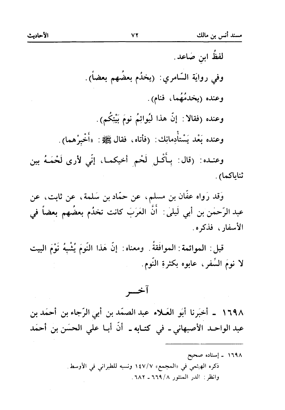 قَالَ: الطَّبَرَانِيُّ لَمْ يَرْوِهِ، عَنْ حَمَّادِ بْنِ سَلَمَةَ إِلَّا مُحَمَّدُ بْنُ الْحَسَنِ الْأَسَدِيُّ.