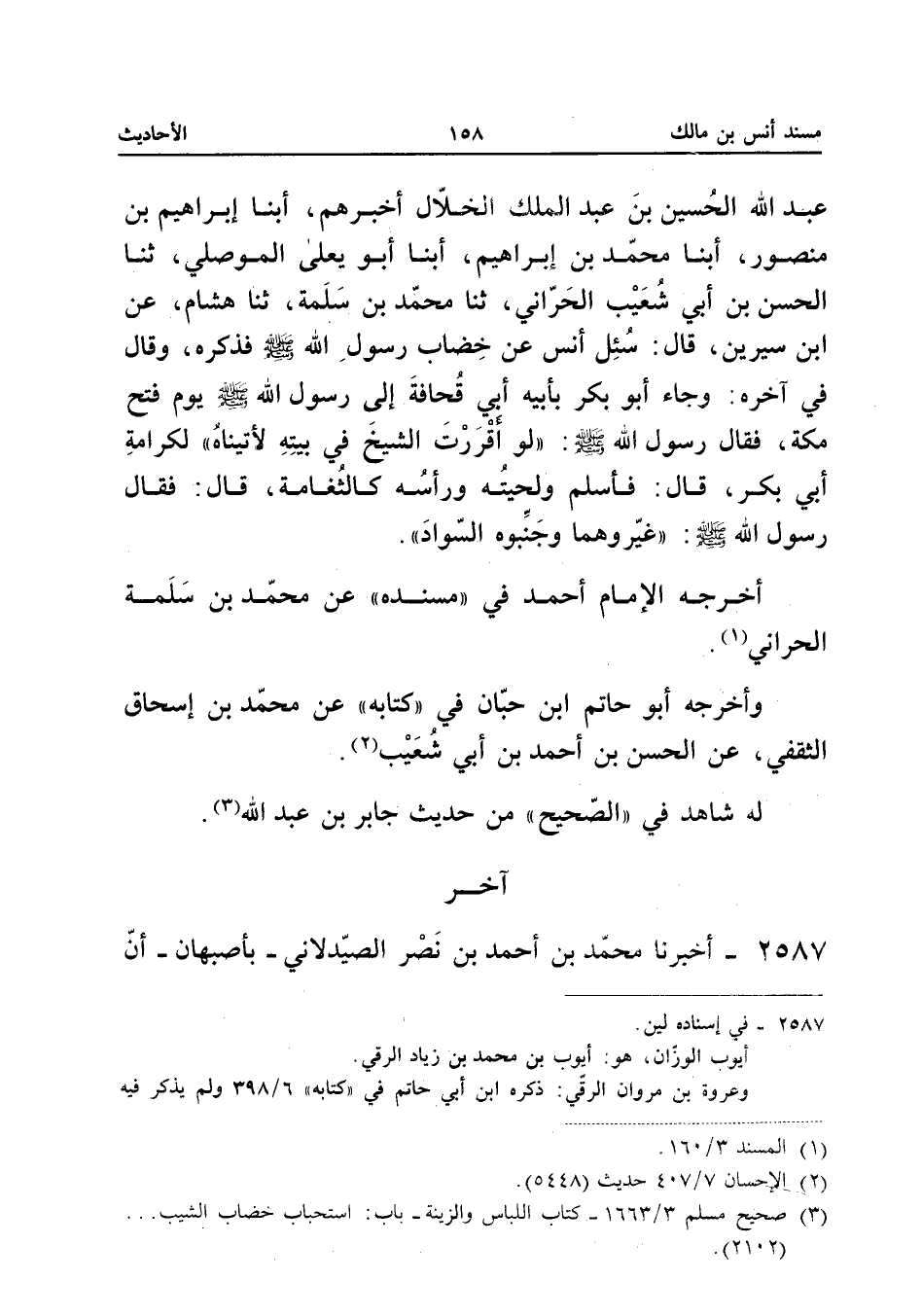 ٢٥٨٧ - أَخْبَرَنَا مُحَمَّدُ بْنُ أَحْمَدَ بْنِ نَصْرٍ الصَّيْدَلَانِيُّ - بِأَصْبَهَانَ - أَنَّ