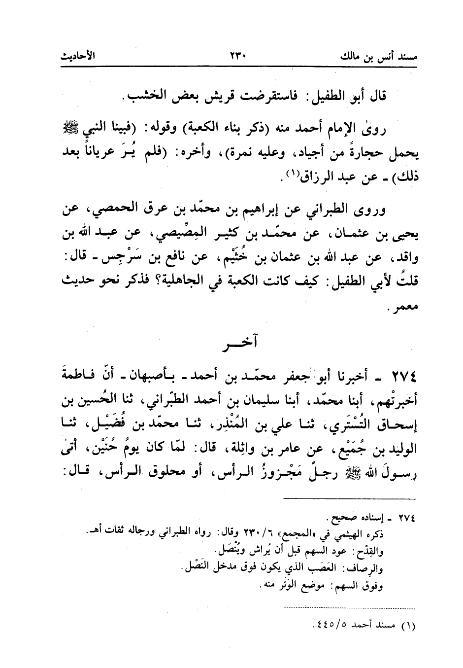 ٢٧٤ - أَخْبَرَنَا أَبُو جَعْفَرٍ مُحَمَّدُ بْنُ أَحْمَدَ - بِأَصْبَهَانَ - أَنَّ فَاطِمَةَ أَخْبَرَتْهُمْ، أَبْنَا مُحَمَّدٌ، أَبْنَا سُلَيْمَانُ بْنُ أَحْمَدَ الطَّبَرَانِيُّ، ثَنَا الْحُسَيْنُ بْنُ إِسْحَاقَ التُّسْتَرِيُّ، ثَنَا عَلِيُّ بْنُ الْمُنْذِرِ، ثَنَا مُحَمَّدُ بْنُ الْفُضَيْلِ، ثَنَا الْوَلِيدُ بْنُ جُمَيْعٍ، عَنْ عَامِرِ بْنِ وَاثِلَةَ قَالَ: «لَمَّا كَانَ يَوْمُ حُنَيْنٍ أَتَى رَسُولَ اللهِ - صَلَّى اللهُ عَلَيْهِ وَسَلَّمَ - رَجُلٌ مَجْزُوزُ الرَّأْسِ، أَوْ مَحْلُوقُ الرَّأْسِ، قَالَ: