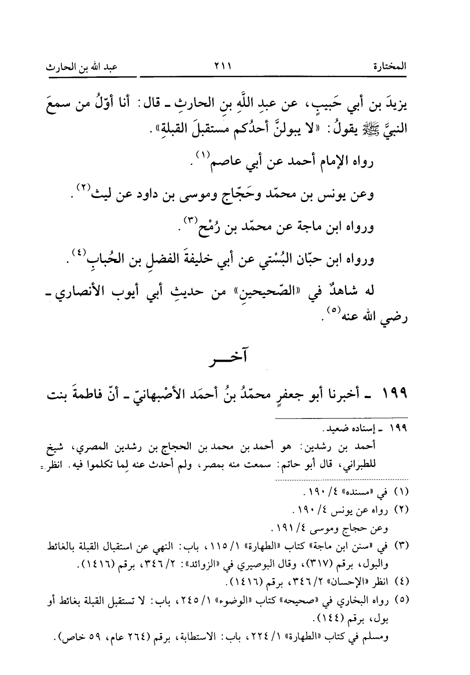 ١٩٩ - أَخْبَرَنَا أَبُو جَعْفَرٍ مُحَمَّدُ بْنُ أَحْمَدَ الْأَصْبَهَانِيُّ، أَنَّ فَاطِمَةَ بِنْتَ
