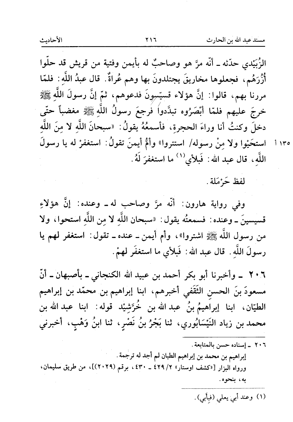 ٢٠٦ - وَأَخْبَرَنَا أَبُو بَكْرٍ أَحْمَدُ بْنُ عُبَيْدِ اللهِ الْكَنْجَانِيُّ - بِأَصْبَهَانَ - أَنَّ مَسْعُودَ بْنَ الْحَسَنِ الثَّقَفِيَّ أَخْبَرَهُمْ، أَبْنَا إِبْرَاهِيمُ بْنُ مُحَمَّدِ بْنِ إِبْرَاهِيمَ الطَّيَّانُ، أَبْنَا إِبْرَاهِيمُ بْنُ عَبْدِ اللهِ بْنِ خُرْشَيْدَ، قَوْلُهُ: أَبْنَا عَبْدُ اللهِ بْنُ مُحَمَّدِ بْنِ زِيَادٍ النَّيْسَابُورِيُّ، ثَنَا بَجْرُ بْنُ نَصْرٍ، ثَنَا ابْنُ وَهْبٍ، أَخْبَرَنِي