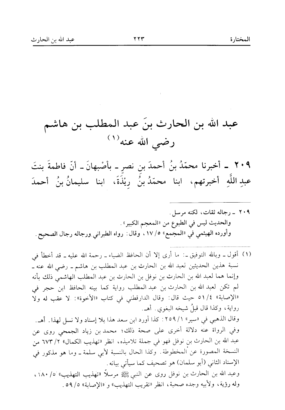 ٢٠٩ - أَخْبَرَنَا مُحَمَّدُ بْنُ أَحْمَدَ بْنِ نَصْرٍ - بِأَصْبَهَانَ - أَنَّ فَاطِمَةَ بِنْتَ عَبْدِ اللهِ أَخْبَرَتْهُمْ، أَبْنَا مُحَمَّدُ بْنُ رِيذَةَ، أَبْنَا سُلَيْمَانُ بْنُ أَحْمَدَ