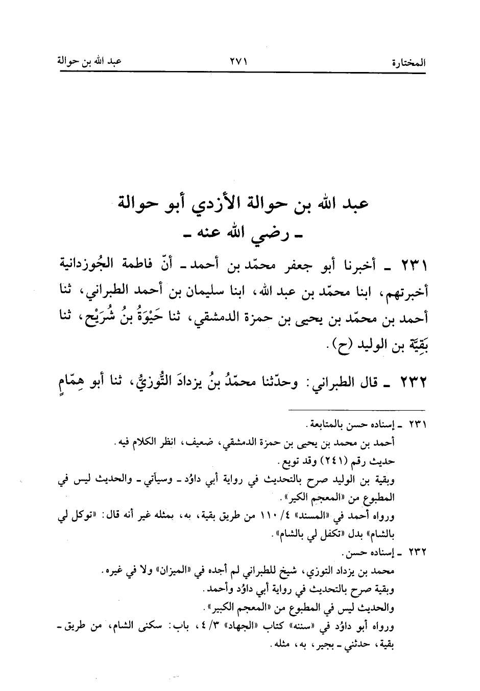 ٢٣١ - أَخْبَرَنَا أَبُو جَعْفَرٍ مُحَمَّدُ بْنُ أَحْمَدَ، أَنَّ فَاطِمَةَ الْجُوزْدَانِيَّةَ أَخْبَرَتْهُمْ، أَبْنَا مُحَمَّدُ بْنُ عَبْدِ اللهِ، أَبْنَا سُلَيْمَانُ بْنُ أَحْمَدَ الطَّبَرَانِيُّ، ثَنَا أَحْمَدُ بْنُ مُحَمَّدِ بْنِ يَحْيَى بْنِ حَمْزَةَ الدِّمَشْقِيُّ، ثَنَا حَيْوَةُ بْنُ شُرَيْحٍ، ثَنَا بَقِيَّةُ بْنُ الْوَلِيدِ (ح).