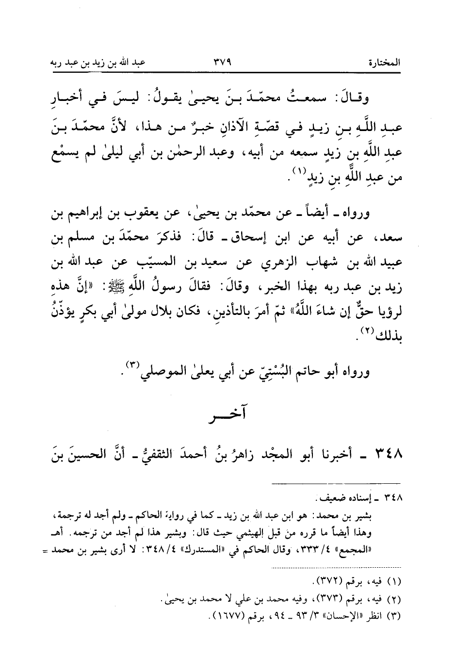 عَبْدِ الْمَلِكِ الْخَلَّالَ أَخْبَرَهُمْ، أَبْنَا إِبْرَاهِيمُ بْنُ مَنْصُورٍ، أَبْنَا مُحَمَّدُ بْنُ إِبْرَاهِيمَ، أَبْنَا أَبُو يَعْلَى أَحْمَدُ بْنُ عَلِيٍّ الْمَوْصِلِيُّ، ثَنَا مُحَمَّدُ بْنُ الْمُثَنَّى، ثَنَا عَبْدُ الْوَهَّابِ، ثَنَا عُبَيْدُ اللهِ، عَنْ بَشِيرِ بْنِ مُحَمَّدٍ، عَنْ عَبْدِ اللهِ بْنِ زَيْدٍ (ح).