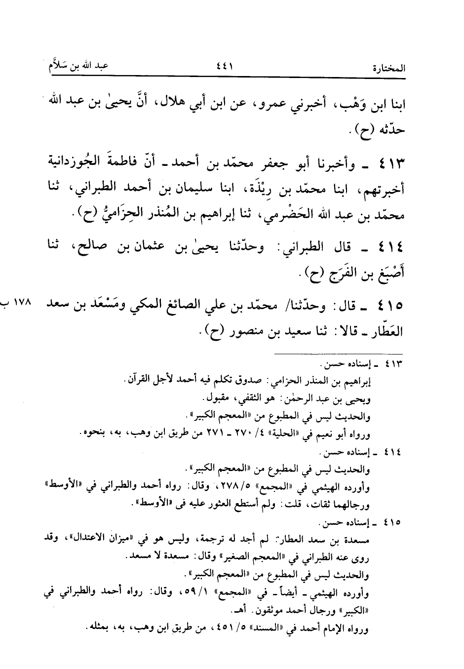 ٤١٣ - وَأَخْبَرَنَا أَبُو جَعْفَرٍ مُحَمَّدُ بْنُ أَحْمَدَ، أَنَّ فَاطِمَةَ الْجُوزْدَانِيَّةَ أَخْبَرَتْهُمْ، أَبْنَا مُحَمَّدُ بْنُ رِيذَةَ، أَبْنَا سُلَيْمَانُ بْنُ أَحْمَدَ الطَّبَرَانِيُّ، ثَنَا مُحَمَّدُ بْنُ عَبْدِ اللهِ الْحَضْرَمِيُّ، ثَنَا إِبْرَاهِيمُ بْنُ الْمُنْذِرِ الْحِزَامِيُّ (ح).