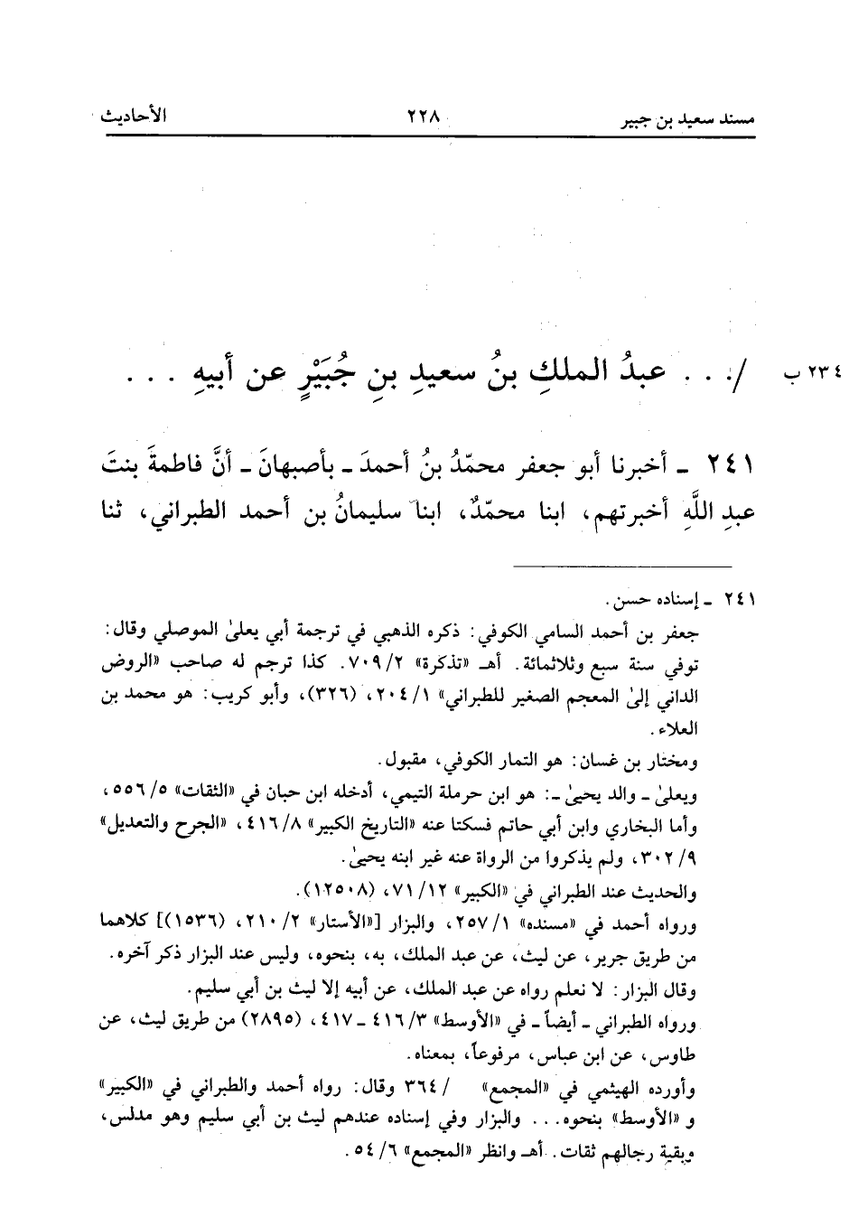 ٢٤١ - أَخْبَرَنَا أَبُو جَعْفَرٍ مُحَمَّدُ بْنُ أَحْمَدَ - بِأَصْبَهَانَ - أَنَّ فَاطِمَةَ بِنْتَ عَبْدِ اللهِ أَخْبَرَتْهُمْ، أَبْنَا مُحَمَّدٌ، أَبْنَا سُلَيْمَانُ بْنُ أَحْمَدَ الطَّبَرَانِيُّ، ثَنَا