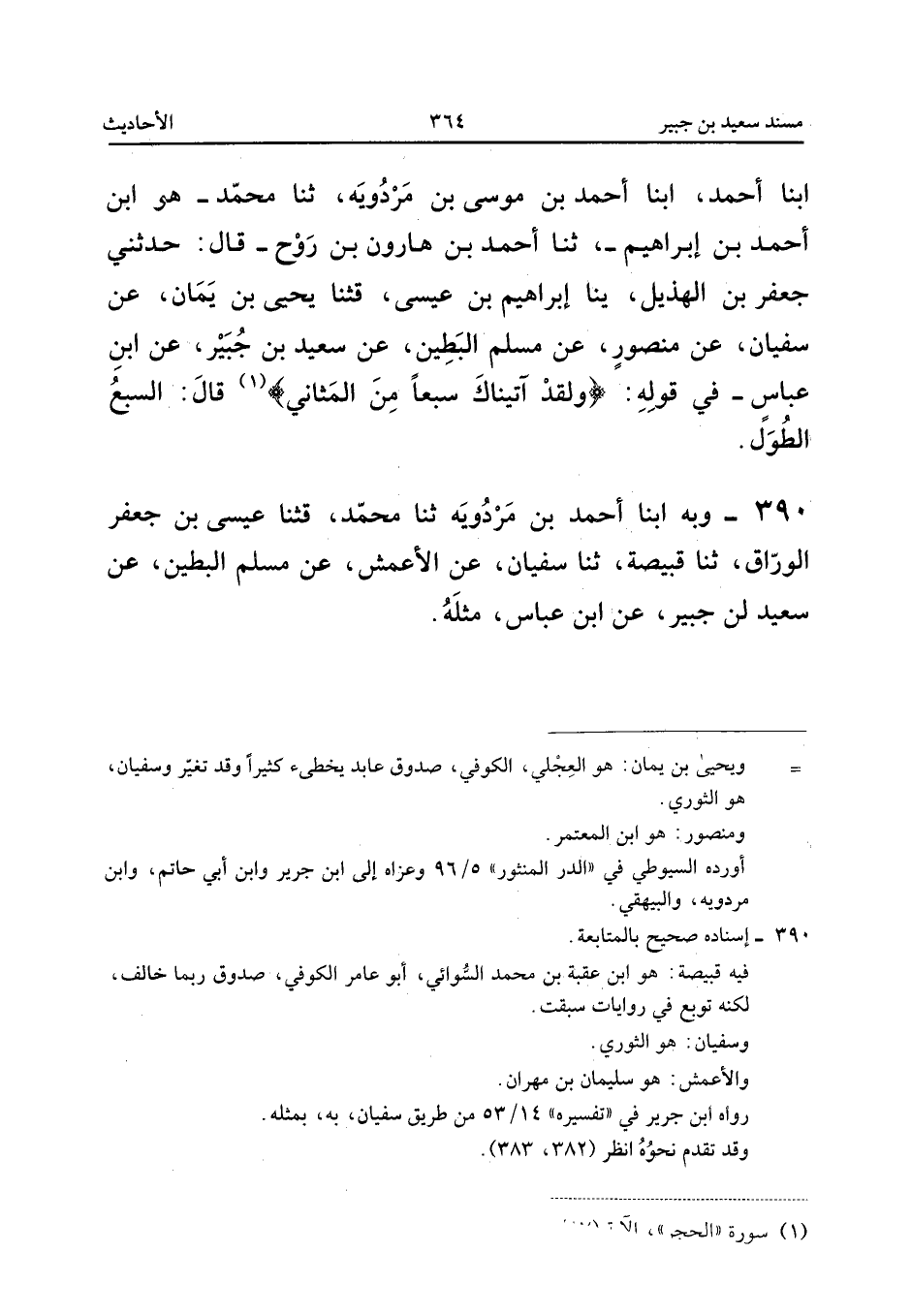 ٣٩٠ - وَبِهِ، أَبْنَا أَحْمَدُ بْنُ مَرْدُوَيْهِ، ثَنَا مُحَمَّدٌ، قَثَنَا عِيسَى بْنُ جَعْفَرٍ الْوَرَّاقُ، ثَنَا قَبِيصَةُ، ثَنَا سُفْيَانُ، عَنِ الْأَعْمَشِ، عَنْ مُسْلِمٍ الْبَطِينِ، عَنْ سَعِيدِ بْنِ جُبَيْرٍ، عَنِ ابْنِ عَبَّاسٍ مِثْلَهُ.