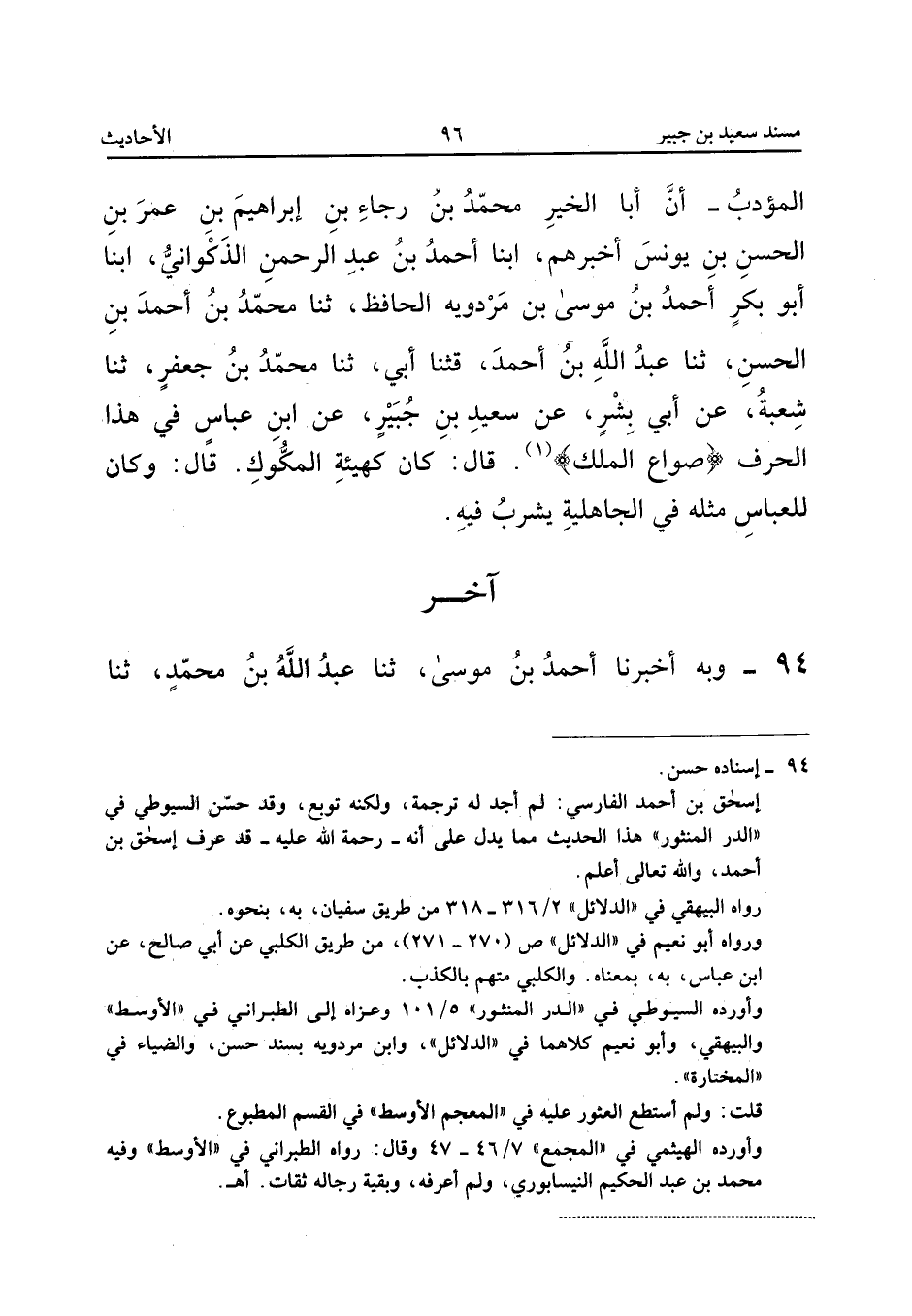 ٩٤ - وَبِهِ أَخْبَرَنَا أَحْمَدُ بْنُ مُوسَى، ثَنَا عَبْدُ اللهِ بْنُ مُحَمَّدٍ، ثَنَا