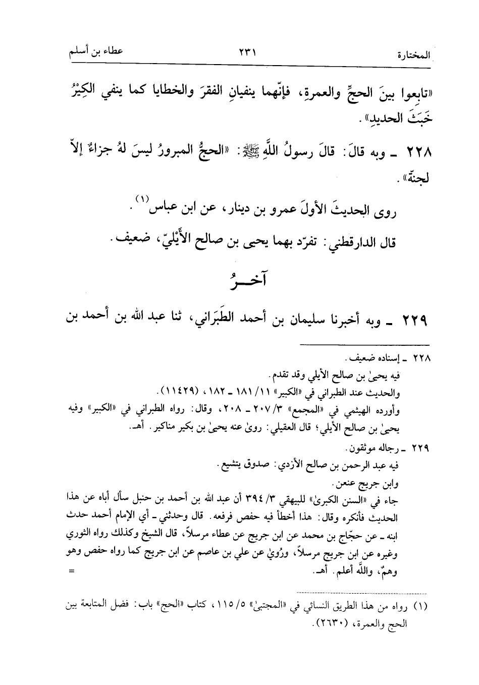 ٢٢٨ - وَبِهِ قَالَ: قَالَ رَسُولُ اللهِ - صَلَّى اللهُ عَلَيْهِ وَسَلَّمَ -: «الْحَجُّ الْمَبْرُورُ لَيْسَ لَهُ جَزَاءٌ إِلَّا الْجَنَّةَ».