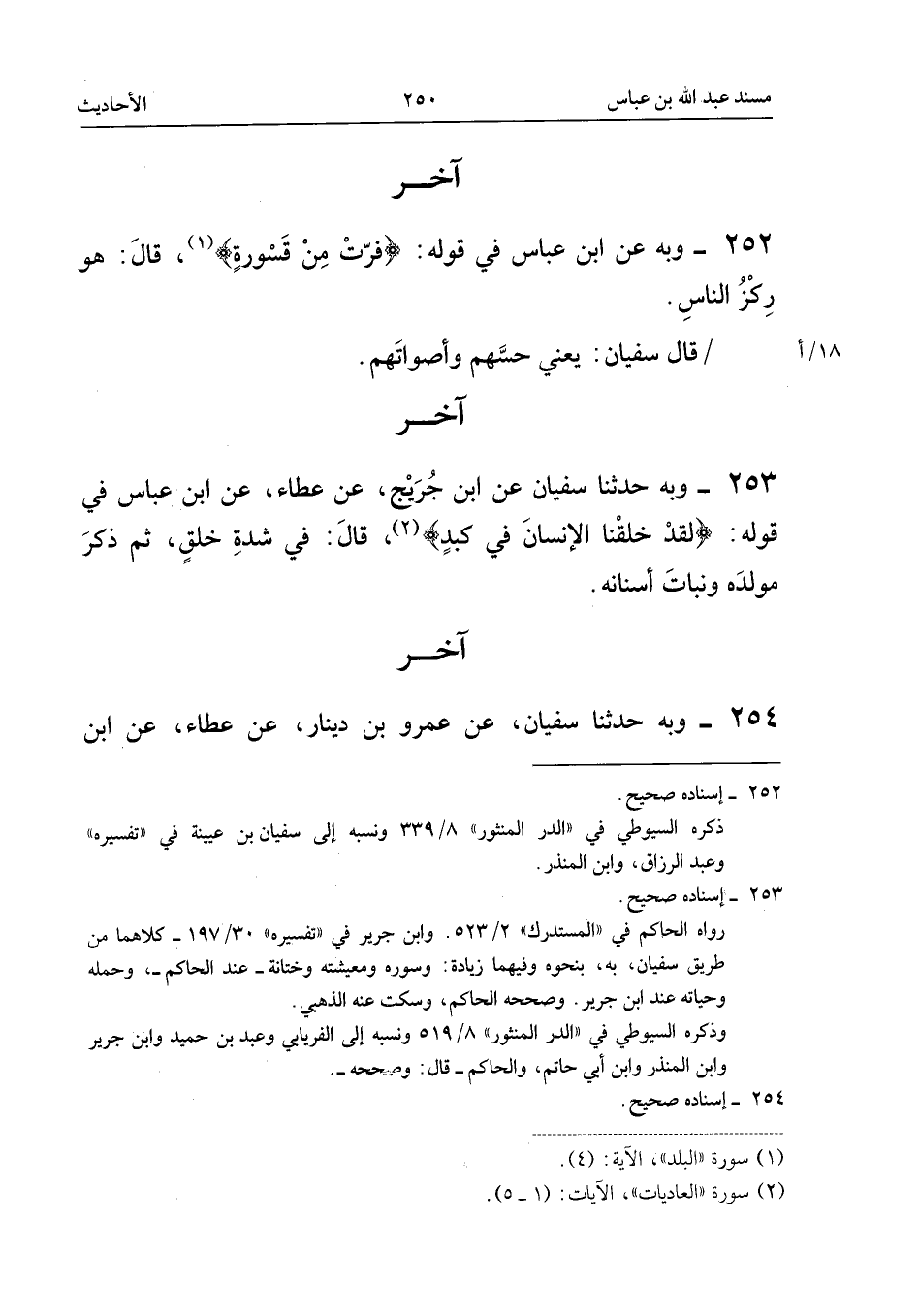 ٢٥٣ - وَبِهِ حَدَّثَنَا سُفْيَانُ عَنِ ابْنِ جُرَيْجٍ، عَنْ عَطَاءٍ، عَنِ ابْنِ عَبَّاسٍ «فِي قَوْلِهِ: {لَقَدْ خَلَقْنَا الإِنْسَانَ فِي كَبَدٍ}، قَالَ: فِي شِدَّةِ خَلْقٍ، ثُمَّ ذَكَرَ مَوْلِدَهُ وَنَبَاتَ أَسْنَانِهِ».