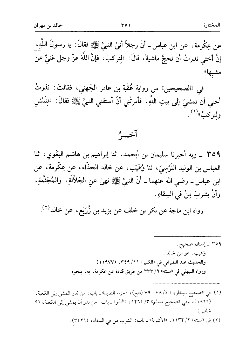 رَوَاهُ ابْنُ مَاجَهْ عَنْ بَكْرِ بْنِ خَلَفٍ، عَنْ يَزِيدَ بْنِ زُرَيْعٍ، عَنْ خَالِدٍ.
