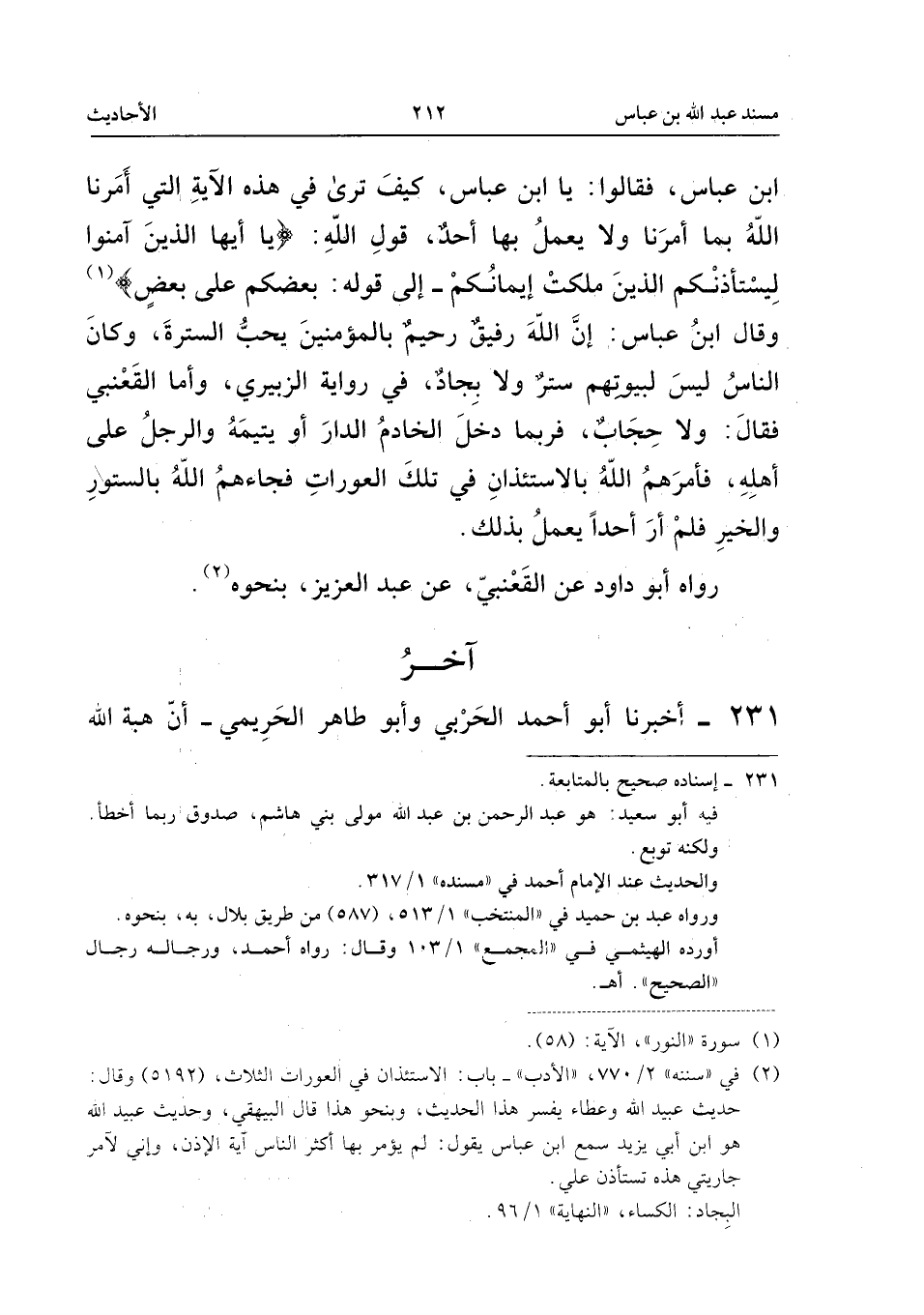 أَخْبَرَهُمْ، أَبْنَا الْحَسَنُ، أَبْنَا أَحْمَدُ، ثَنَا عَبْدُ اللهِ، حَدَّثَنِي أَبِي، ثَنَا أَبُو سَعِيدٍ، ثَنَا سُلَيْمَانُ بْنُ بِلَالٍ، عَنْ عَمْرِو ابْنِ أَبِي عَمْرٍو، عَنْ عِكْرِمَةَ، عَنِ ابْنِ عَبَّاسٍ: أَنَّ رَسُولَ اللهِ - صَلَّى اللهُ عَلَيْهِ وَسَلَّمَ - (ح).