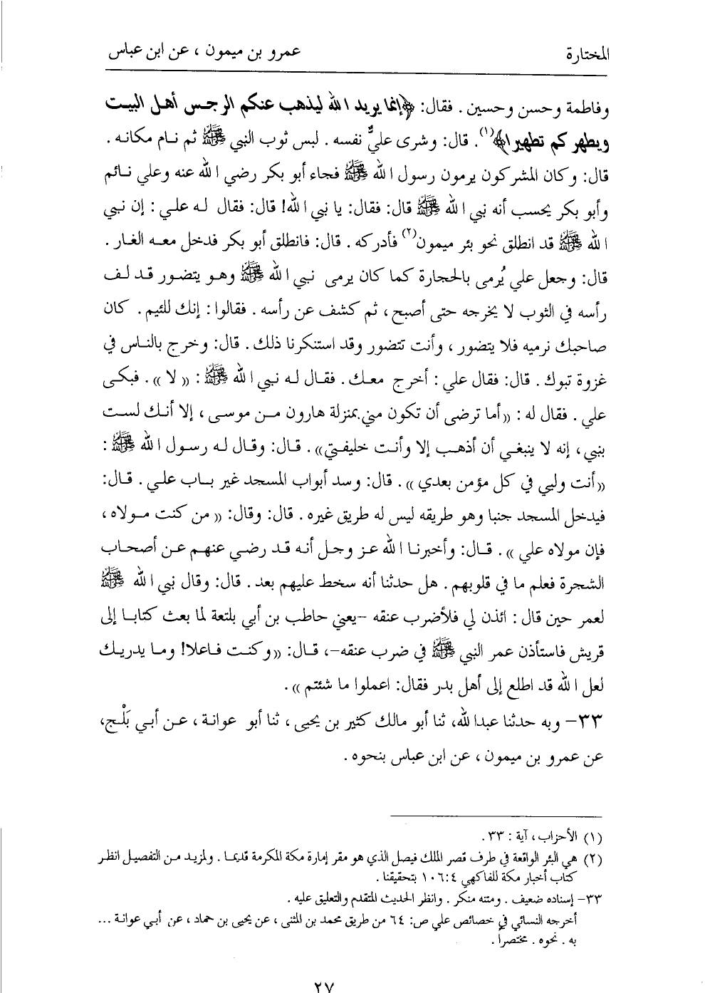 ٣٣ - وَبِهِ حَدَّثَنَا عَبْدُ اللهِ، ثَنَا أَبُو مَالِكٍ كَثِيرُ بْنُ يَحْيَى، ثَنَا أَبُو عَوَانَةَ، عَنْ أَبِي بَلْجٍ، عَنْ عَمْرِو بْنِ مَيْمُونٍ، عَنِ ابْنِ عَبَّاسٍ بِنَحْوِهِ.