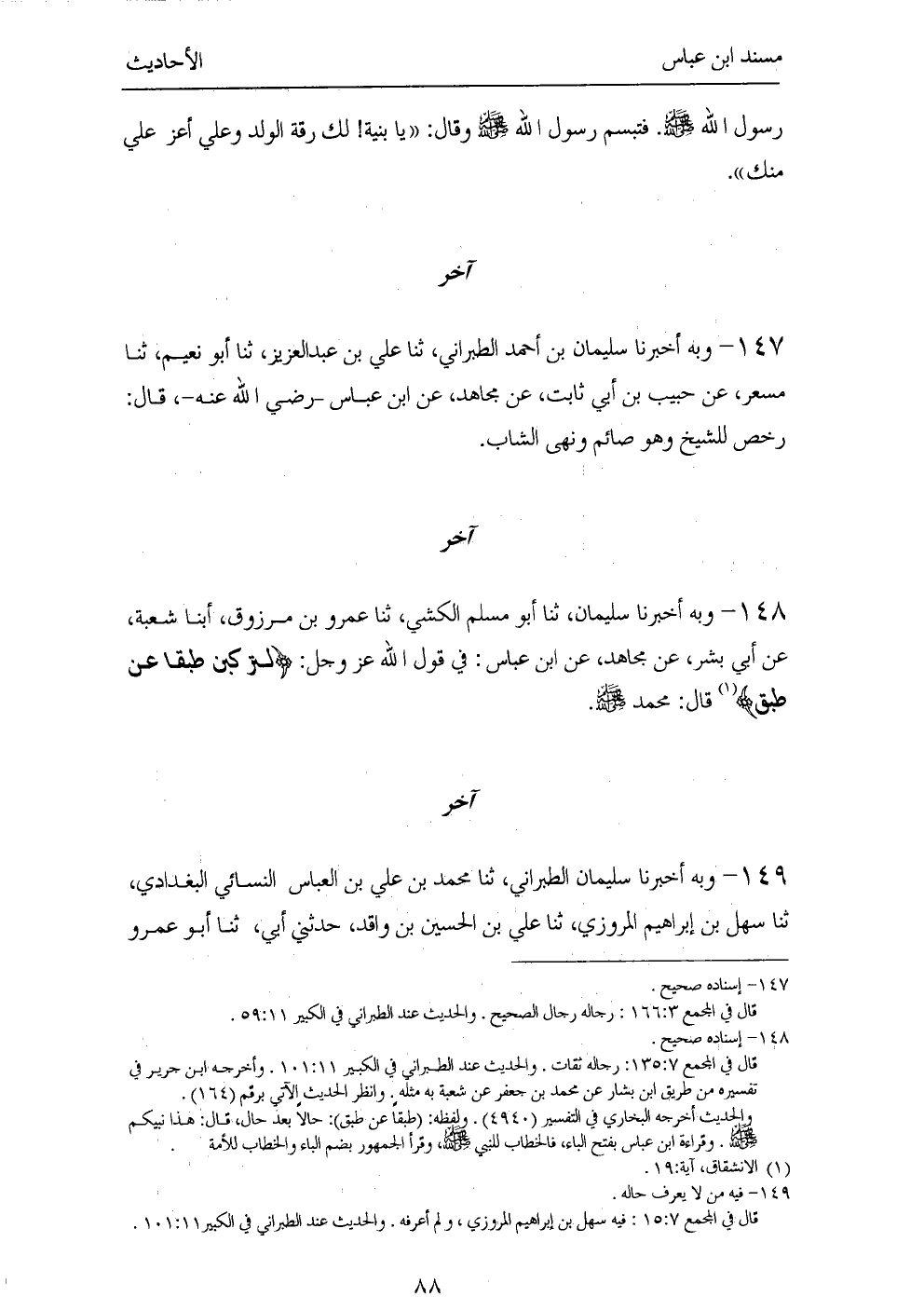 ١٤٨ - وَبِهِ أَخْبَرَنَا سُلَيْمَانُ، ثَنَا أَبُو مُسْلِمٍ الْكَشِّيُّ، ثَنَا عَمْرُو بْنُ مَرْزُوقٍ، أَبْنَا شُعْبَةُ، عَنْ أَبِي بِشْرٍ، عَنْ مُجَاهِدٍ، عَنِ ابْنِ عَبَّاسٍ: «فِي قَوْلِ اللهِ عَزَّ وَجَلَّ: {لَتَرْكَبُنَّ طَبَقًا عَنْ طَبَقٍ} قَالَ: مُحَمَّدٌ صَلَّى اللهُ عَلَيْهِ وَسَلَّمَ».