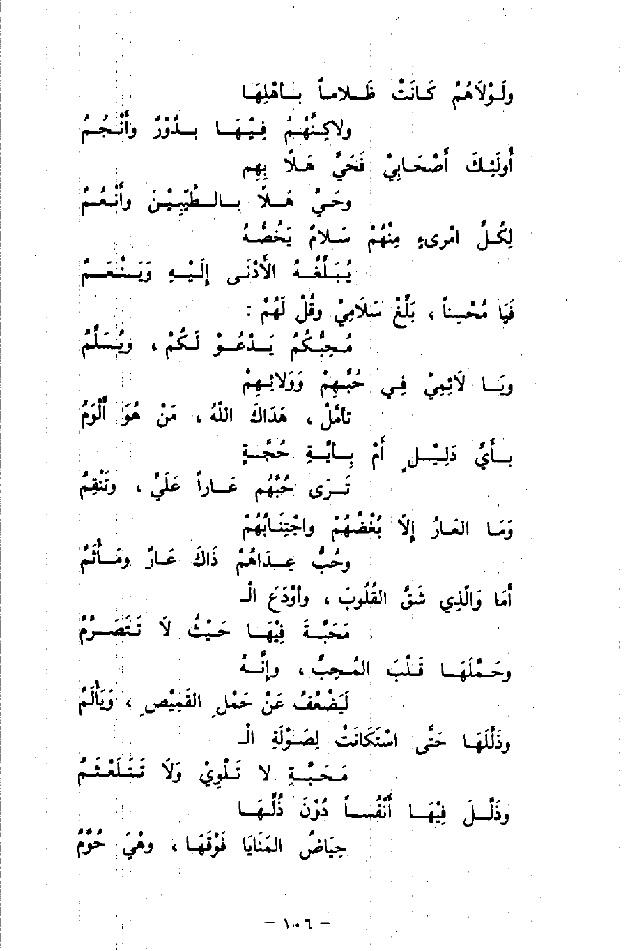 فيا مُحسنًا، بَلِّغْ سَلامِي وقل لَهُم: ... مُحبُّكُم يَدعُو لكُمْ، وَيُسلِّمُ