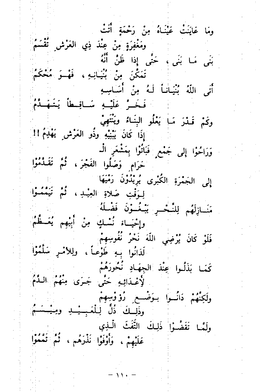 ولَمَّا تقضَّوا ذلكَ التَّفَثَ الّذِي ... عَلَيْهِمْ، وأَوْفُوْا نَذْرَهُم، ثُمَّ تَمَّمُوْا