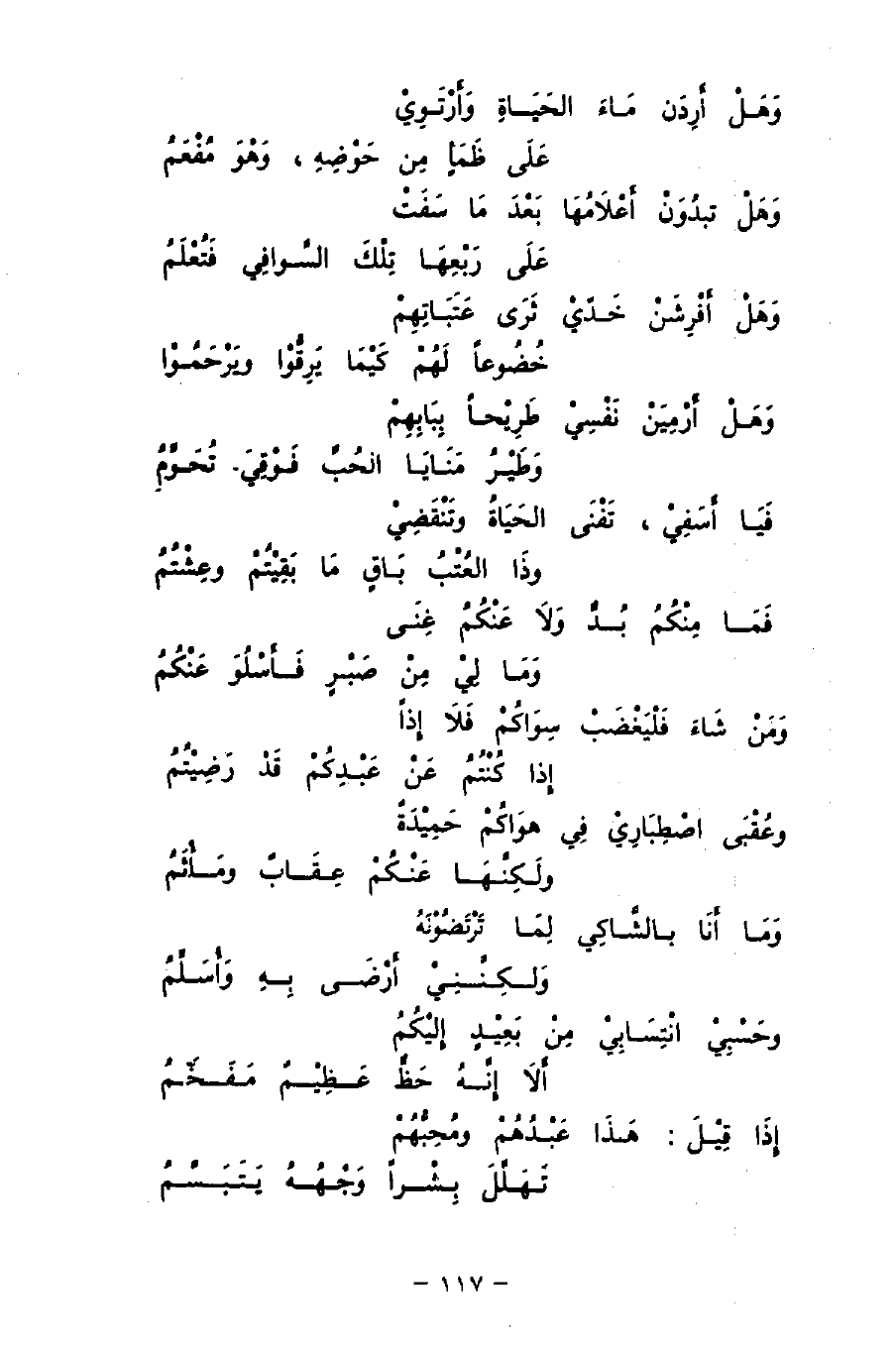 فَمَا منْكُمُ بُدٌّ وَلاَ عَنْكُمُ غِنَى ... وَمَا ليْ منْ صَبْرٍ فَأَسْلُوَا عَنْكُمُ
