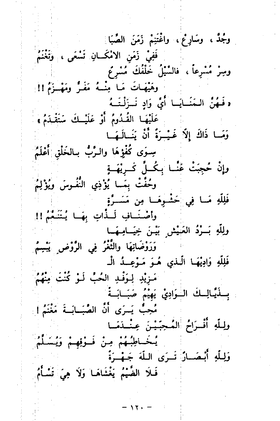 بِذَيَّالِكَ الوَاديْ يَهيْمُ صَبَابةً ... مُحبٌّ يَرَى أَنَّ الصَّبَابَةَ مَغْنَمُ!