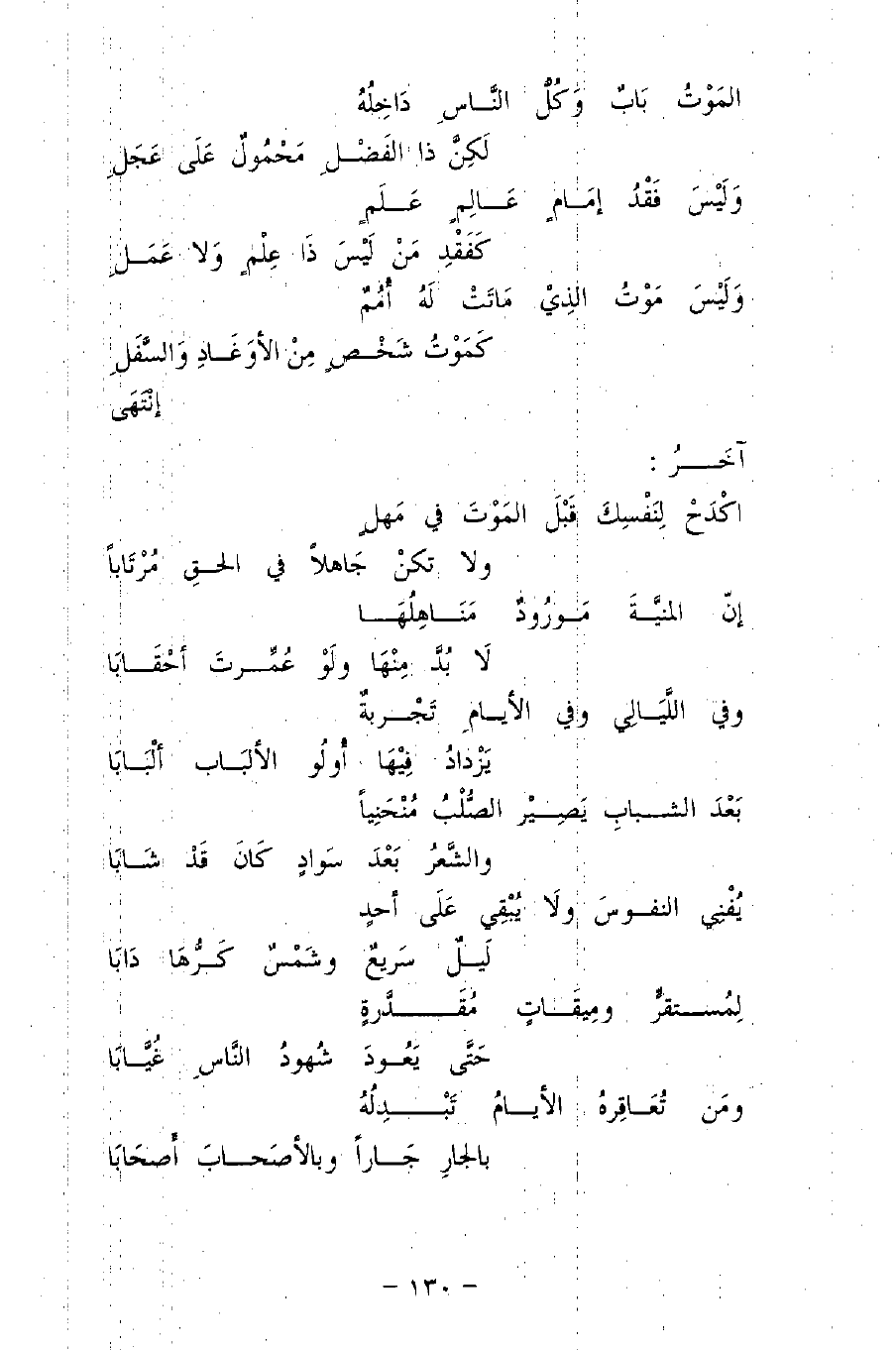 إِنْ المَنِيَّة مَورُودٌ مَنَاهِلُها ... لاَبُدَّ مِنْهَا وَلَو عُمِّرتَ أَحْقابًا