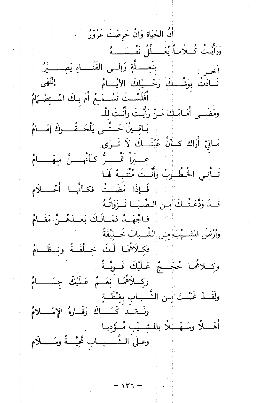 أَهلاً وَسهلاً بِالمَشِيْبِ مُؤَدِبًا ... وَعَلَى الشَّبابِ تَحِيَّةٌ وَسلامُ