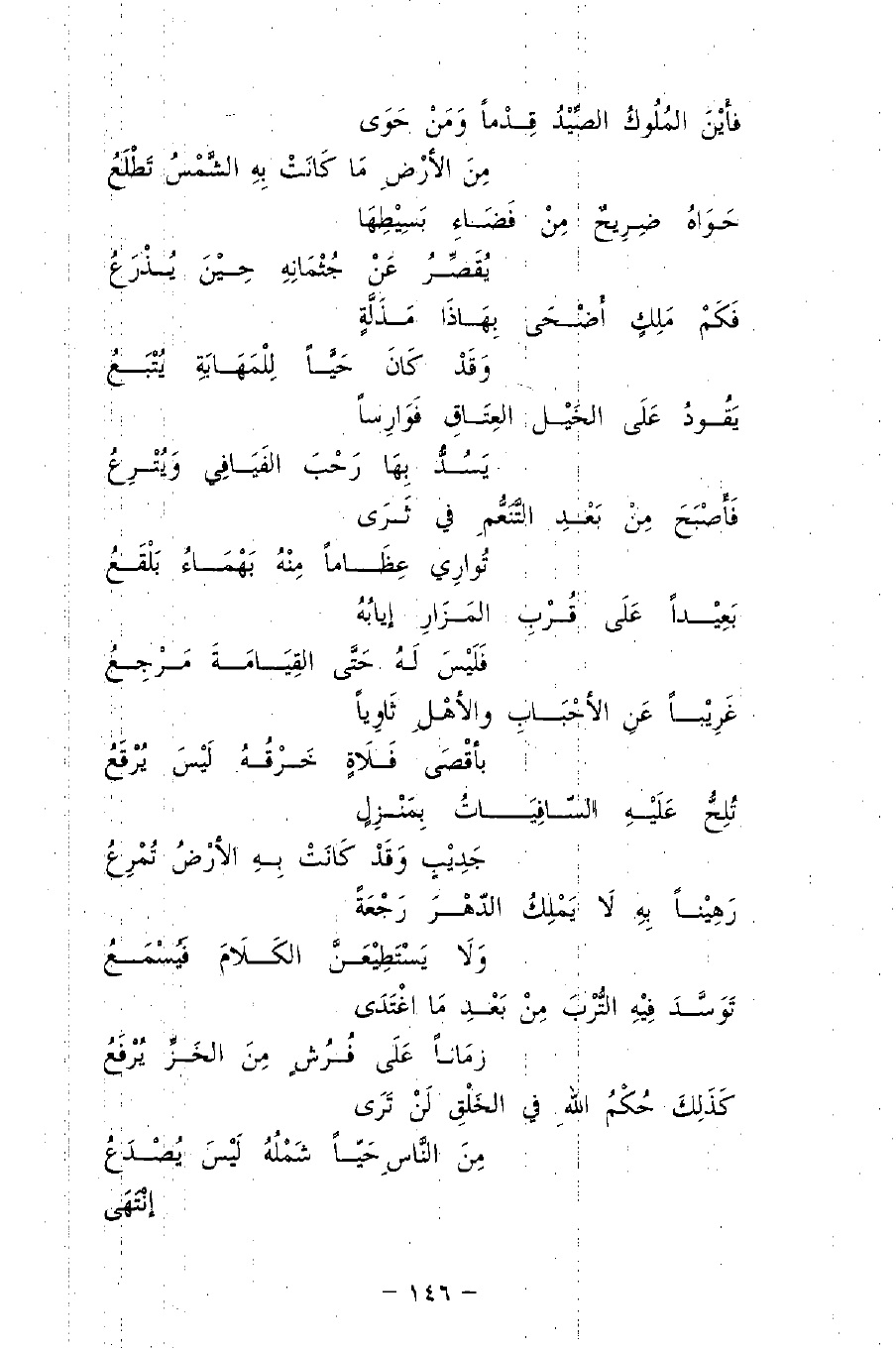 فَأَينَ المُلُوكُ الصَّيْدُ قِدْمًا وَمَنْ حَوَى ... مِنَ الأَرْضِ مَا كَانَتْ بِهِ الشَّمْسُ تَطْلَعُ