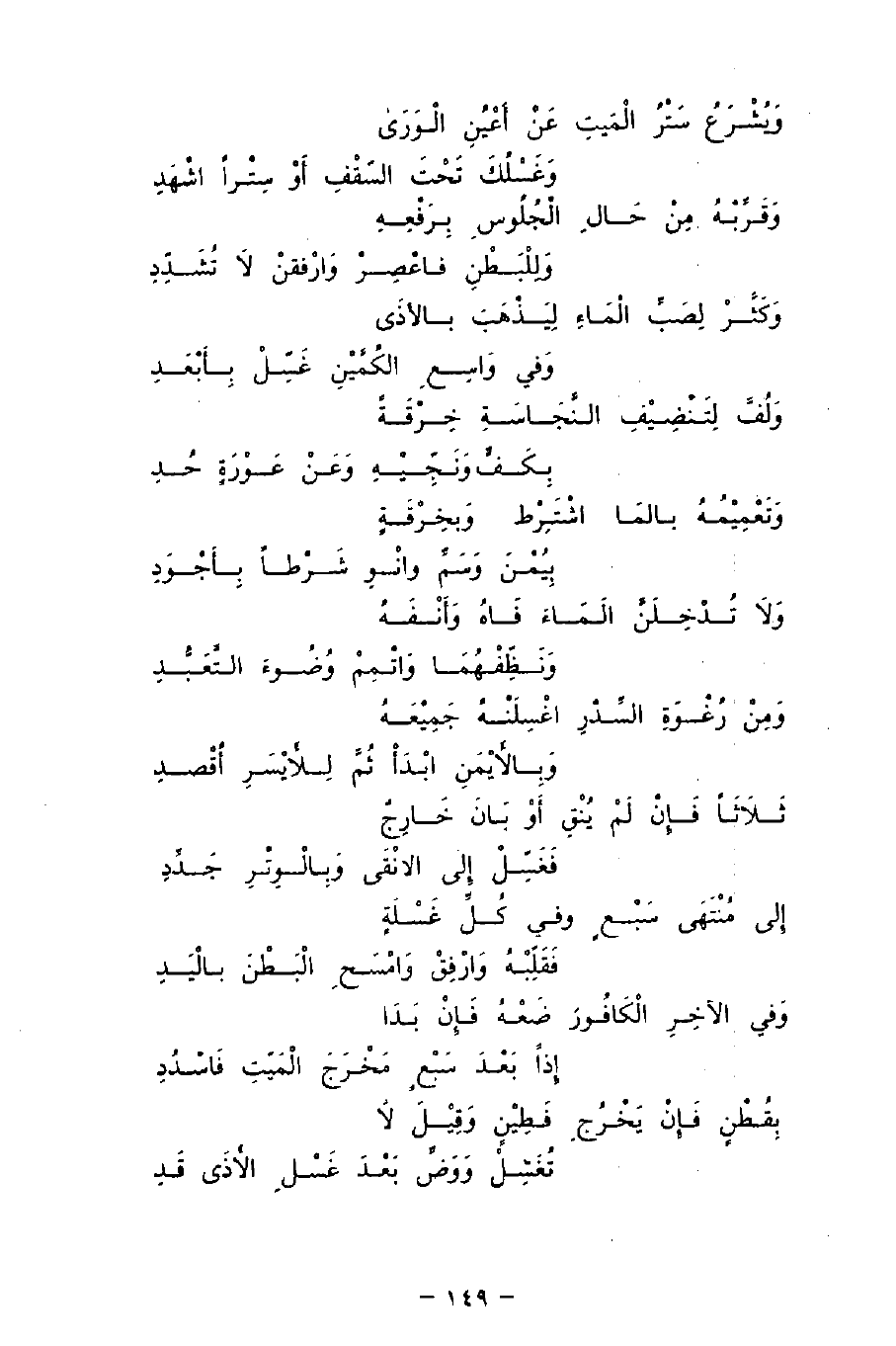 وَمِنْ رُغْوَةِ السِّدْرِ اغْسِلَنْه جَمِيْعَهُ ... وَبِالأَيْمَنِ ابْدَأْ ثُمَّ لِلأَيْسَرِ اقْصدِ