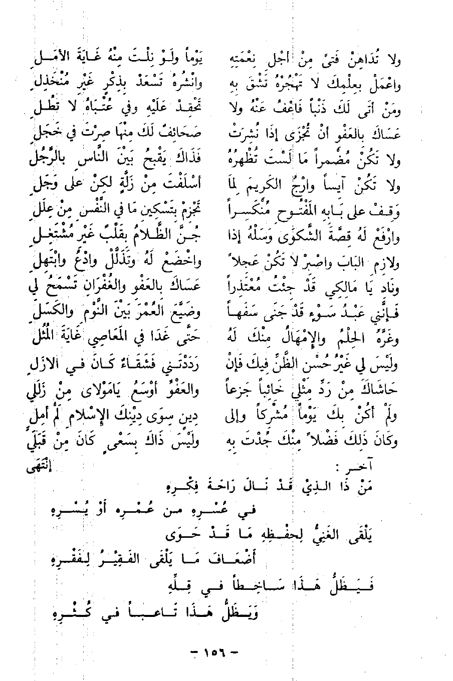 ولازِمِ البَابَ واصْبِرْ لا تَكُنْ عَجِلاً ... واخْضَعْ لَهُ وتَذَلَّلْ وَادْعُ وابْتَهِلِ