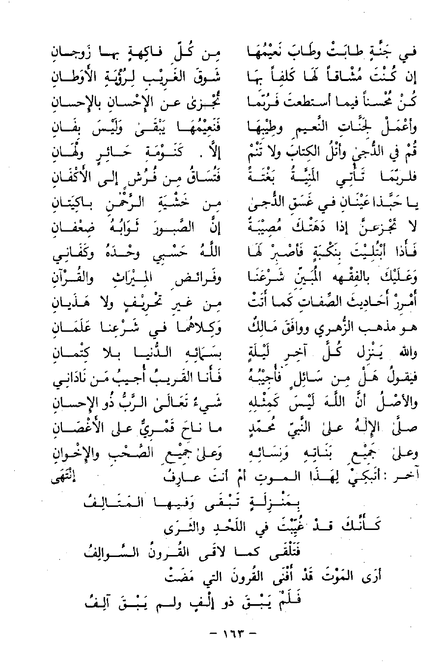 وَعَلَيْكَ بالفِقْهه المُبَيِّنِ شَرْعَنَا ... وفَرائضِ المِيْرَاثِ والقُرآنِ ...