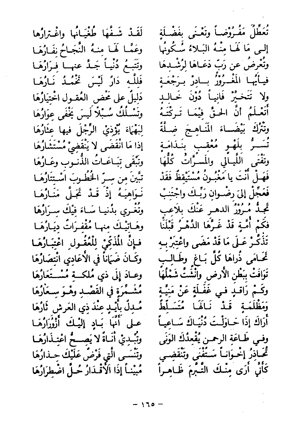 حاذر إِخْوَانًا سَتَفْنَى وَتَنْقَضِي ... وَتَنْسَى الَّتِي فَرْضٌ عَلَيْكَ حِذارُهَا