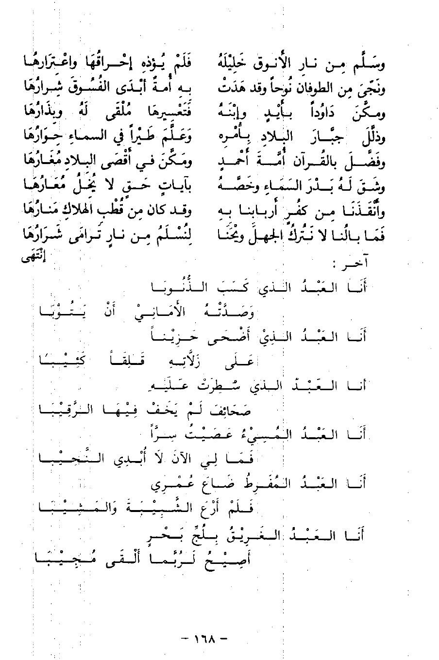 أَنَا العَبْدُ الَّذِي أَضْحَى حَزِينًا ... عَلَى زَلَّاتِهِ قَلِقًا كَئِيبَا ...
