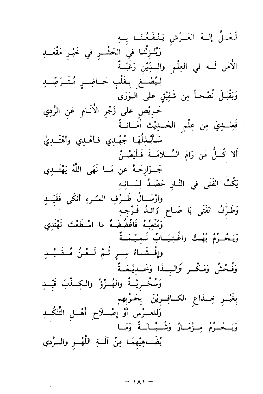 وَيَقْبَل نُصْحًا مِن شَفِيْقٍ على الوَرَى ... حَرِيْصٍ عَلَى زَجْرِ الأَنَامِ عَنِ الرَّدِى