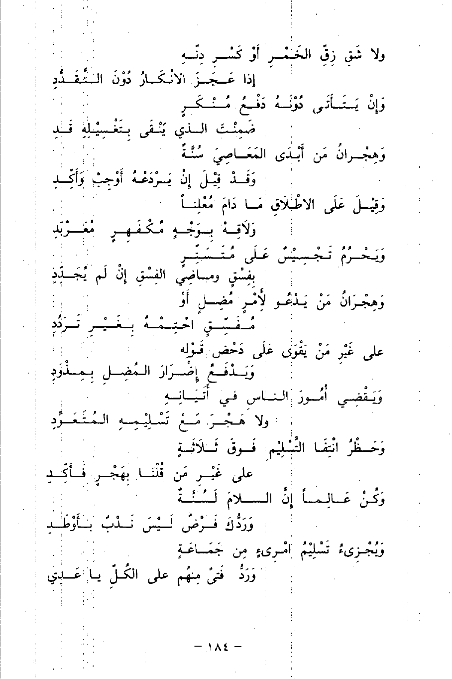 وَكُنْ عَالِمًا أَنَّ السلامَ لَسُنَّةٍ ... وَرَدُّك فَرْضٌ لَيْسَ نَدْبًا بِأَوْطَدِ