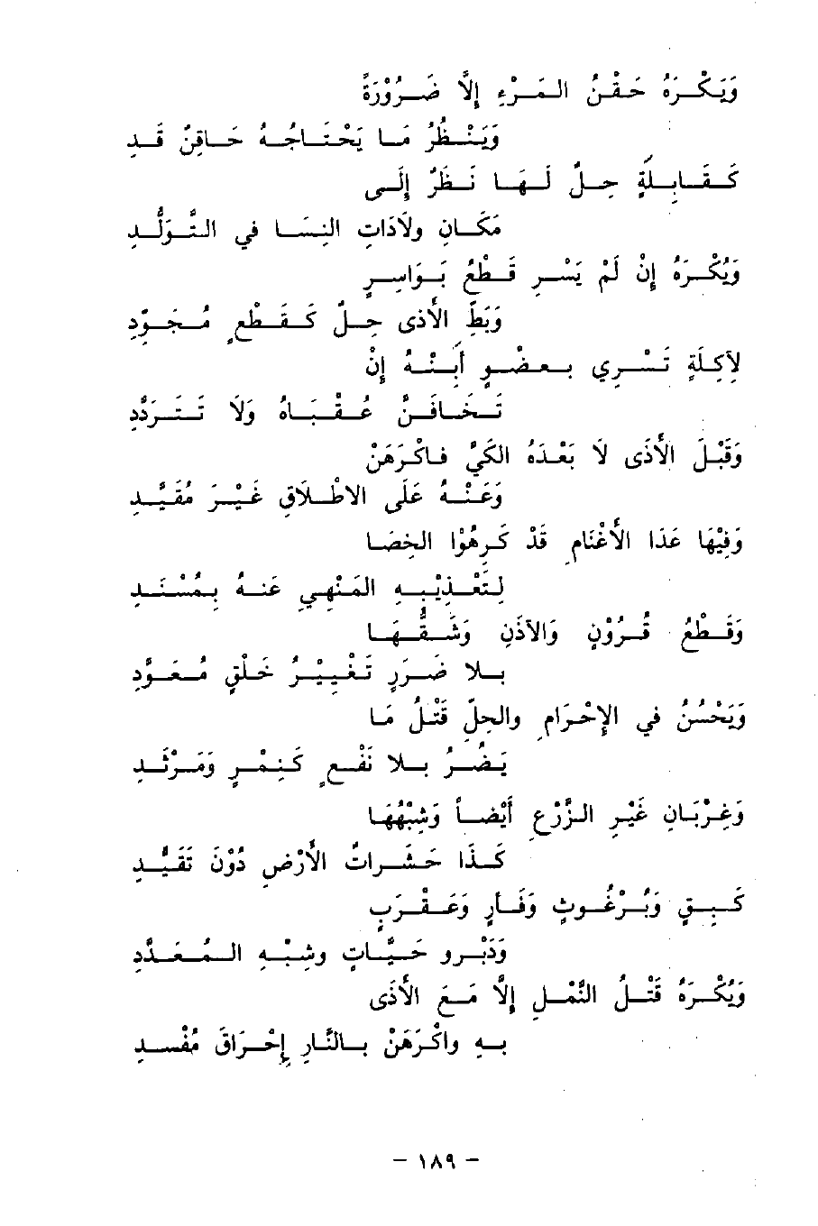 كَبَقٍ وَبُرْغُوثٍ وَفَأْرٍ وَعَقْرَبٍ ... وَدَبرو حَيْاَّتٍ وَشِبْهِ المُعَدِّدِ