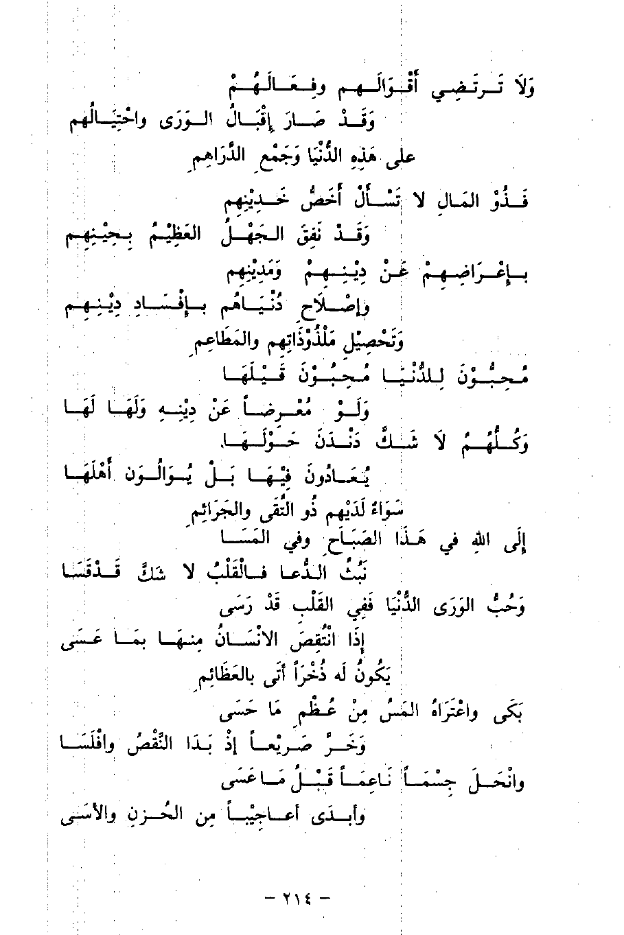 مُحِبُّوْنَ لِلدُّنْيَا مُحِبُوْنَ قَيْلَهَا ... وَلَوْ مُعْرِضًا عَنْ دِيْنِهِ وَلَهَا لَهَا