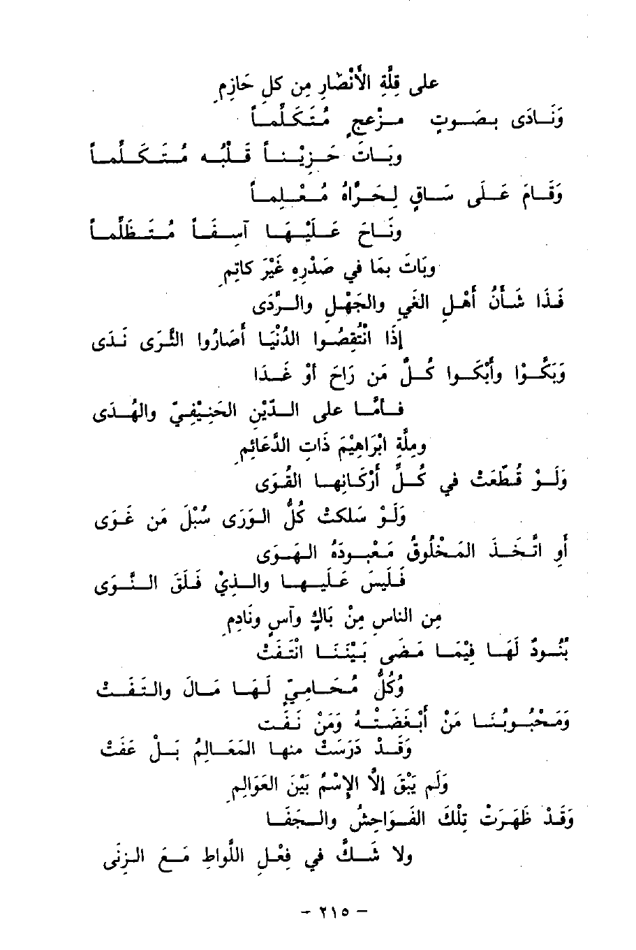 وَبَكَّوْا وأَبْكَوا كُلَّ مَن رَاحَ أَوْ غَدَا ... فإمَّا على الدّيْنِ الحَنِيْفَيّ والهُدَى