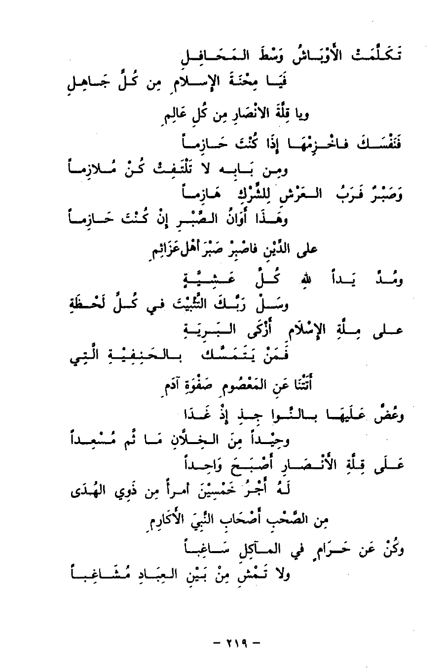 تَكَلَّمَتْ الأَوْبَاشُ وَسْطَ المَحَافِلِ ... فَيَا مِحْنَةَ الإِسلامِ مِن كُلِّ جَاهِلِ