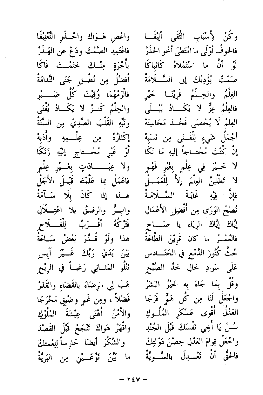 واجْعَلْ قِوامَ العَدْلِ حِصْنَ دَوْلِتكْ ... والشُكْرَ أيضَا حَارِسًا لِنِعْمتكْ