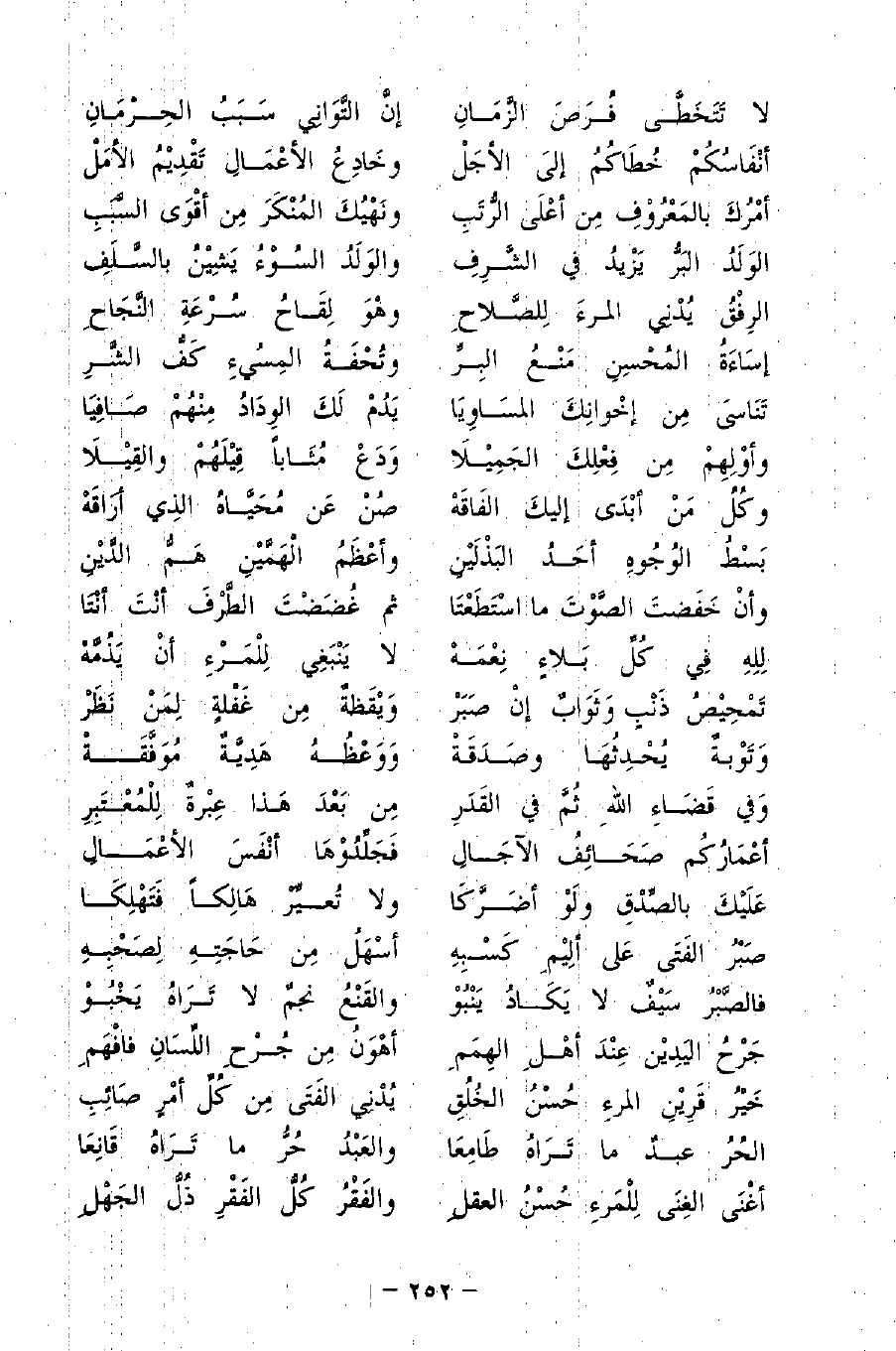 أعْمَارُكُم صَحَائِفُ الآجَالِ ... فَجَلِّدُوْهَا أنْفَسَ الأعْمَالِ