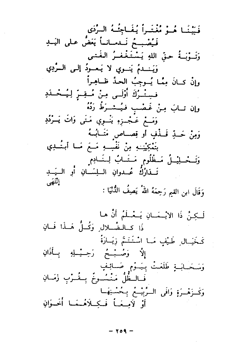 فَبَيْنَا هُوْ مُغْتَرًا يُفَاجِئُهُ الرَّدَى ... فَيُصْبحُ نَدمانًا يَعَضُّ على اليَدِ