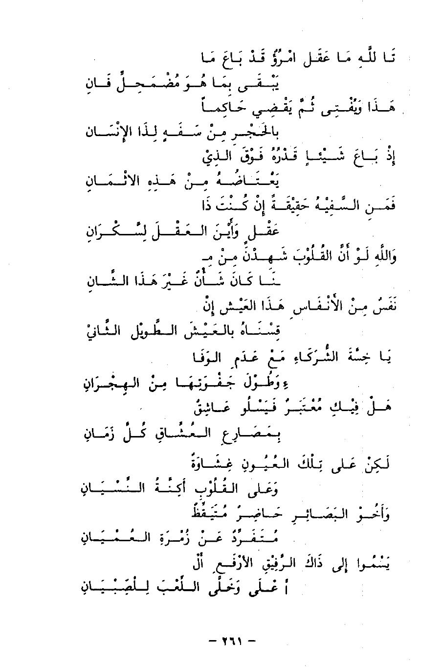 هَلْ فِيْكِ مُعْتَبَرٌ فَيَسْلُو عَاشِقٌ ... بِمَصَارِعِ العُشَّاقِ كُلَّ زَمَانِ
