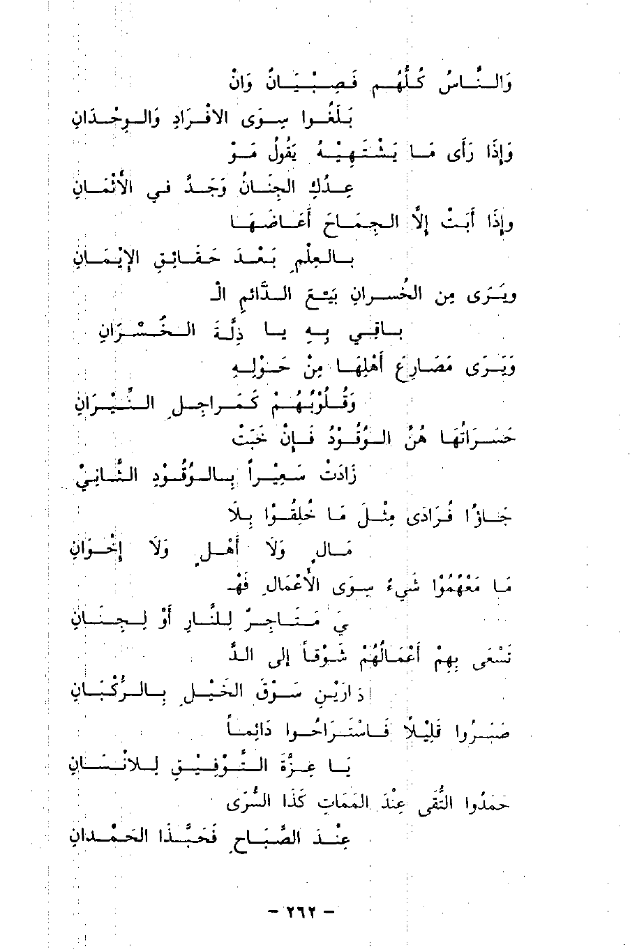 جَاؤُا فُرَادَى مِثْلَ مَا خُلِقُوْا بِلاَ ... مَالٍ وَلاَ أهْلٍ وَلاَ إِخْوَانِ