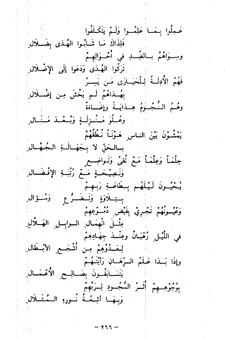 بِوُجُوْهِهِمْ أَثَرُ السُّجُودِ لِرَبِّهِمْ ... وَبِهَا أشِعّةُ نُورِهِ المُتَلاَلِ
