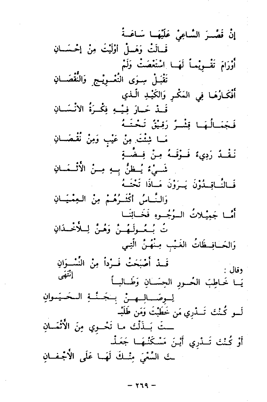 يَا خَاطِبَ الحُورِ الحِسَانِ وَطَالبًا ... لِوِصَالِهنْ بِجَنَّةِ الحَيَوانِ