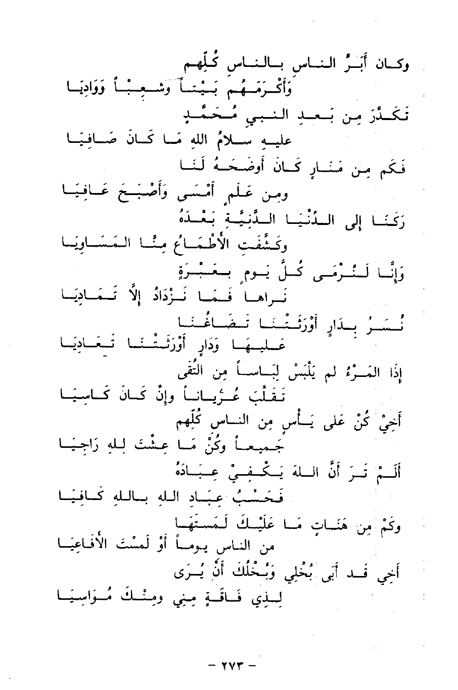 أَلَمْ تَرَ أَنَّ اللهَ يَكْفِيْ عِبَادَهُ ... فَحَسْبُ عِبَادِ اللهِ باللهِ كَافِيَا