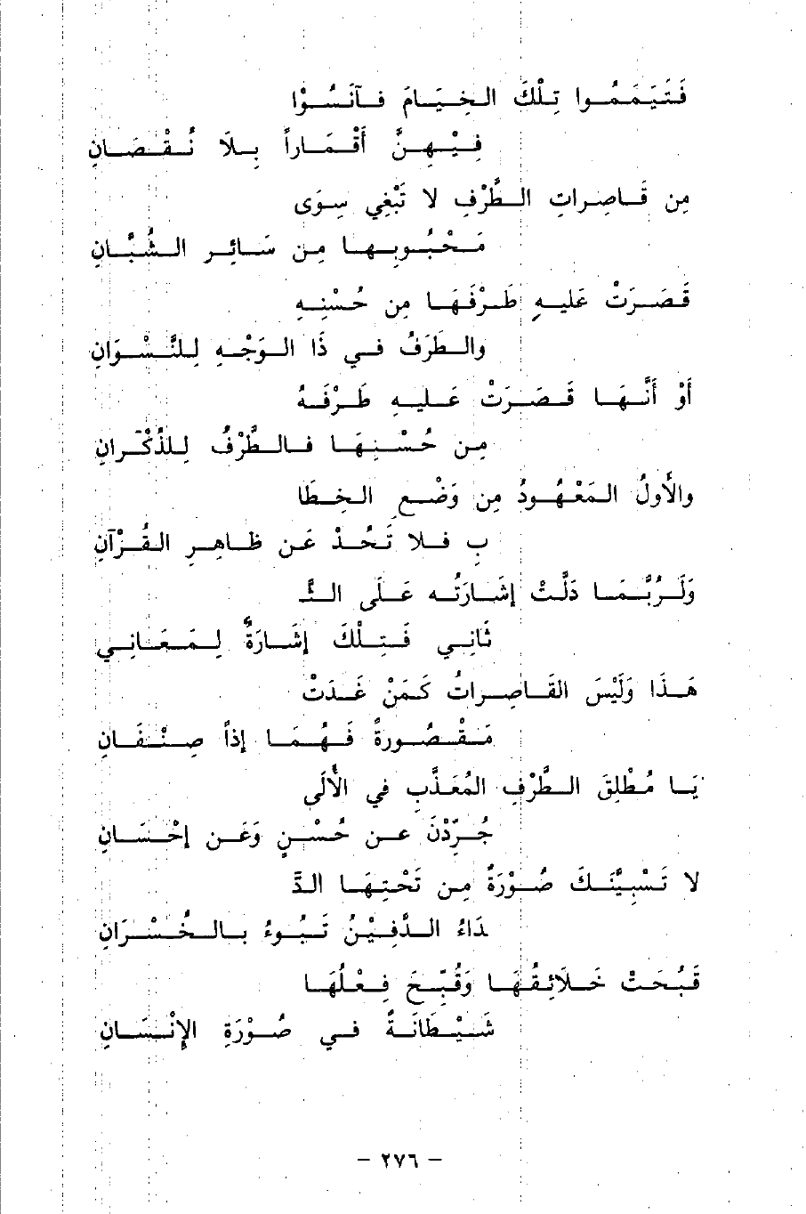 هَذَا وَلَيْسَ القَاصِراتُ كَمَنْ غَدَتْ ... مَقْصُورةً فَهُمَا إذًا صِنْفَانِ