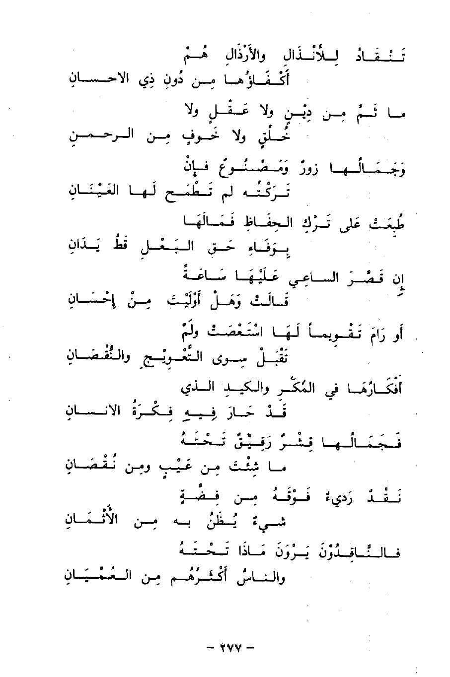 تَنْقَادُ للأنْذَالِ وَالأرذالِ هُمْ ... أكْفَاؤُهَا مِنْ دُوْنِ ذِي الأحْسَانِ