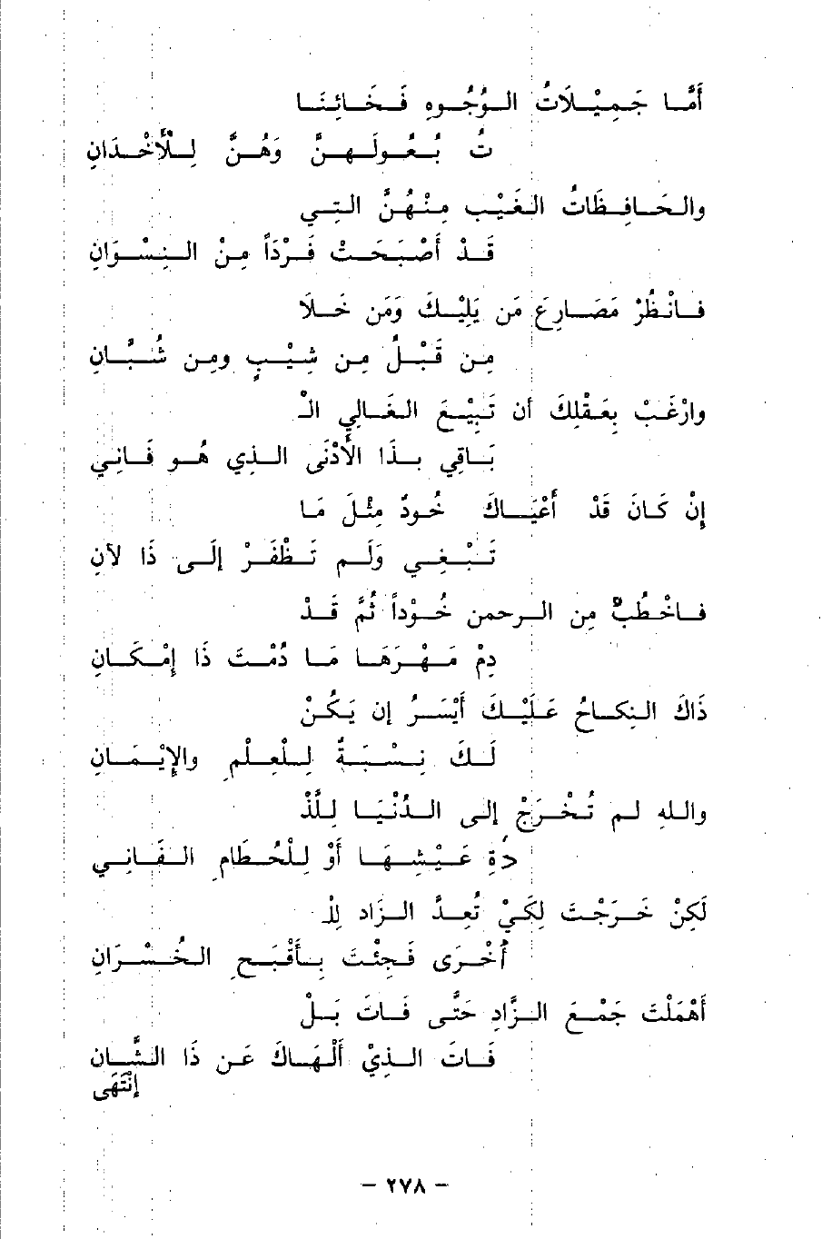 وارْغَبْ بِعَقْلِكَ أن تَبِيْعَ الغَالِي الْـ ... بَاقِي بذَا الأدْنَى الذِي هُو فَانِي