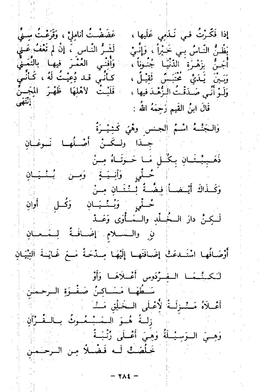 وَالجَنَّةُ اسْمُ الجنسِ وهْيَ كَثِيْرَةٌ ... جِدَا ولكَنْ أَصْلُها نَوعَانِ ...