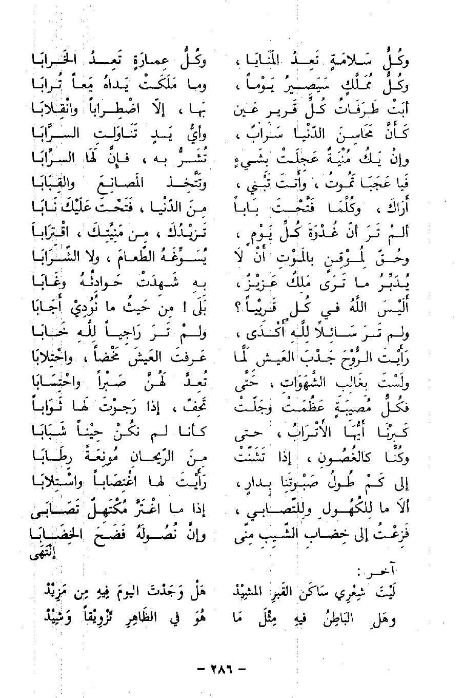 لَيْتَ شِعْري سَاكَن القَبرِ المشِيْدْ ... هَلْ وَجَدْتَ اليومَ فيهِ مِن مَزيْدْ