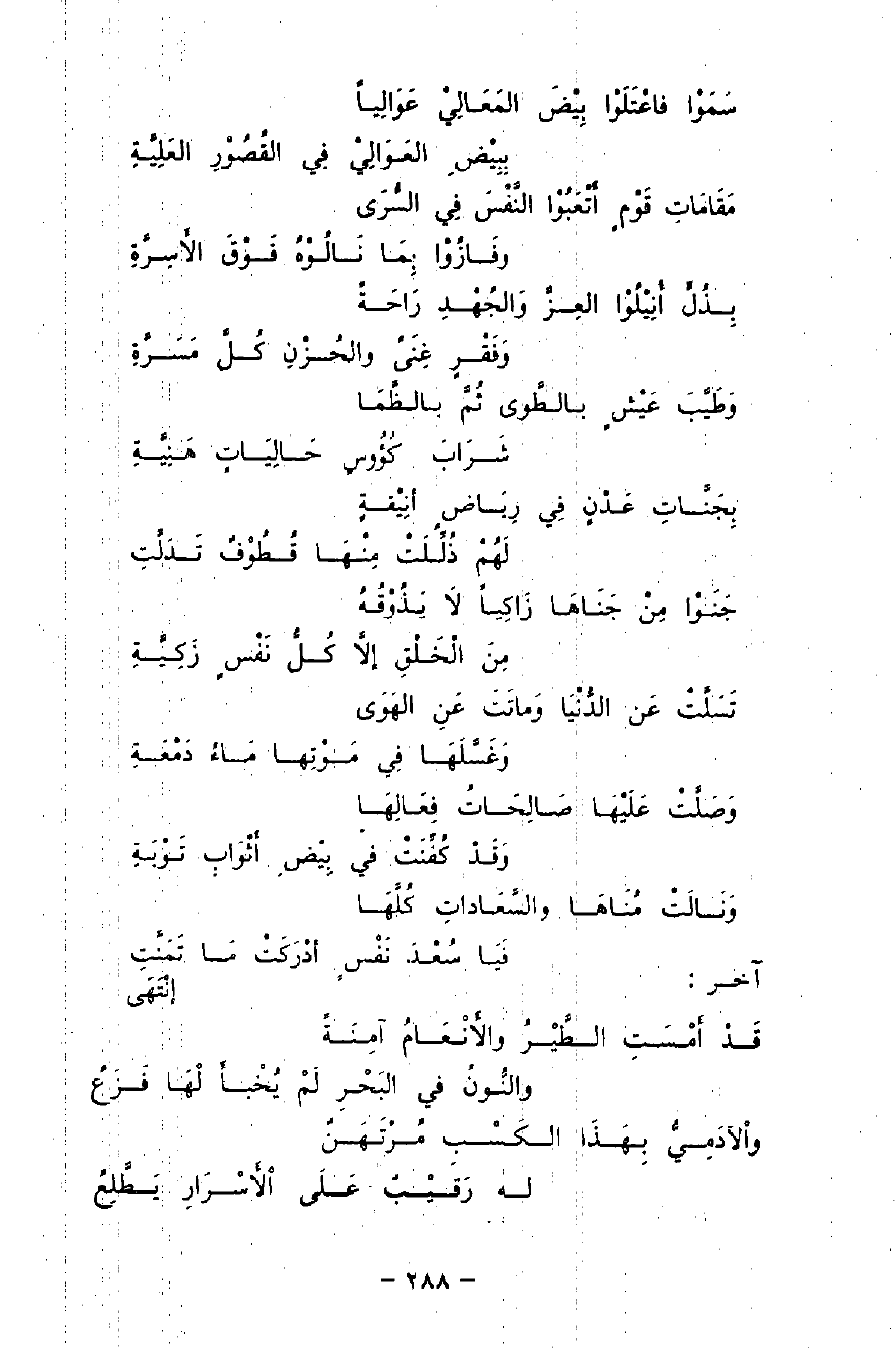 سَمَوْا فاعْتَلَوْا بِيْضَ المَعَالِيْ عَوَالِيًا ... بَبَيْضِ العَوَالِي فِِي القُصُوْرِ العَلِيَّةِ